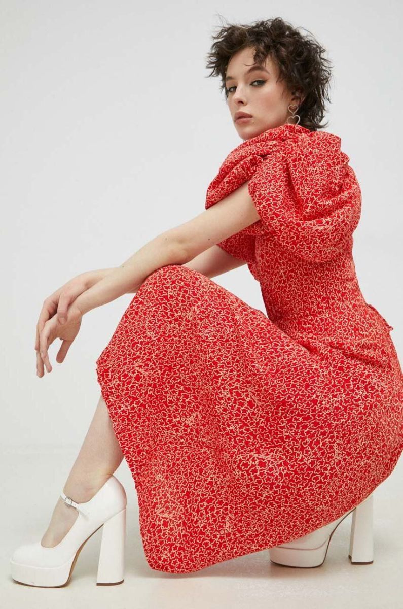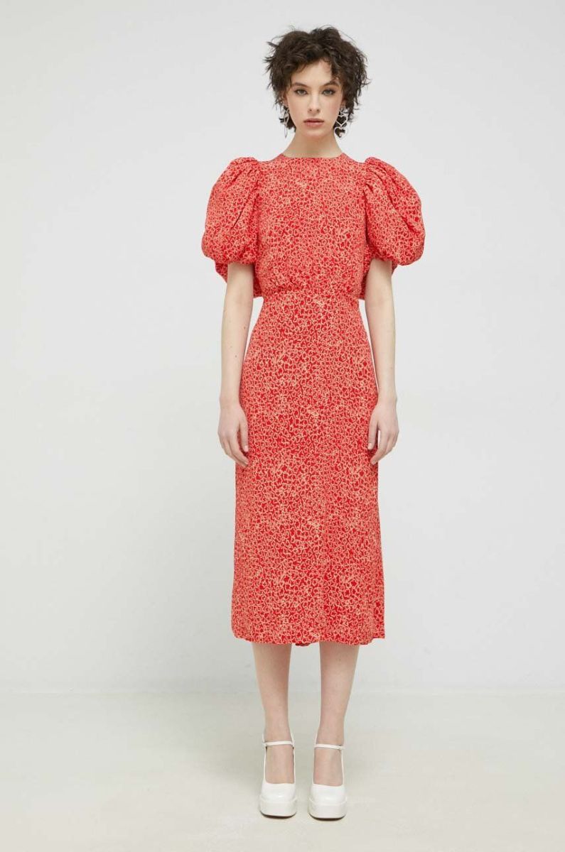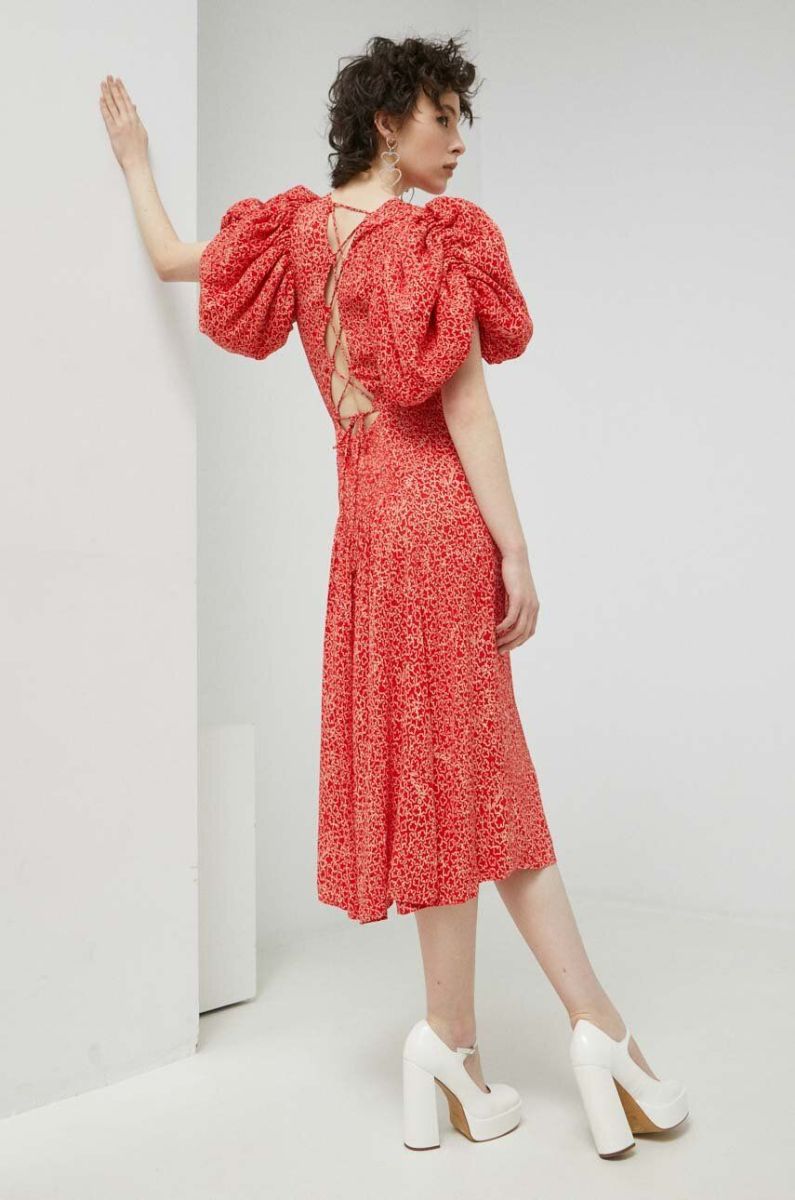 Сукня Rotate колір червоний midi розкльошена