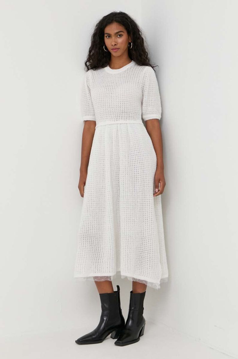 Сукня Silvian Heach колір бежевий midi розкльошена
