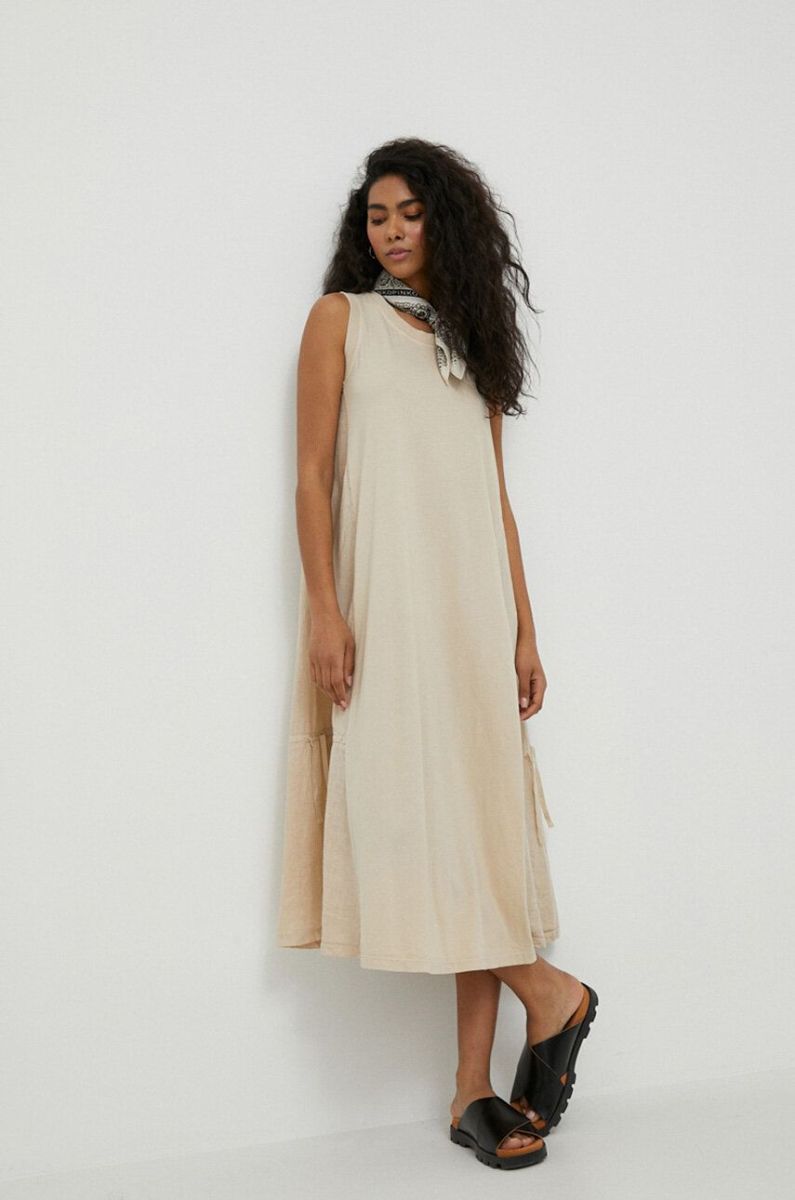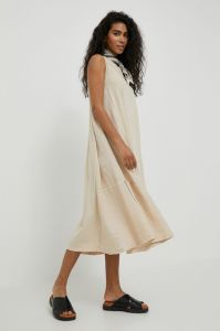 Сукня з домішкою льону Deha колір бежевий midi розкльошена
