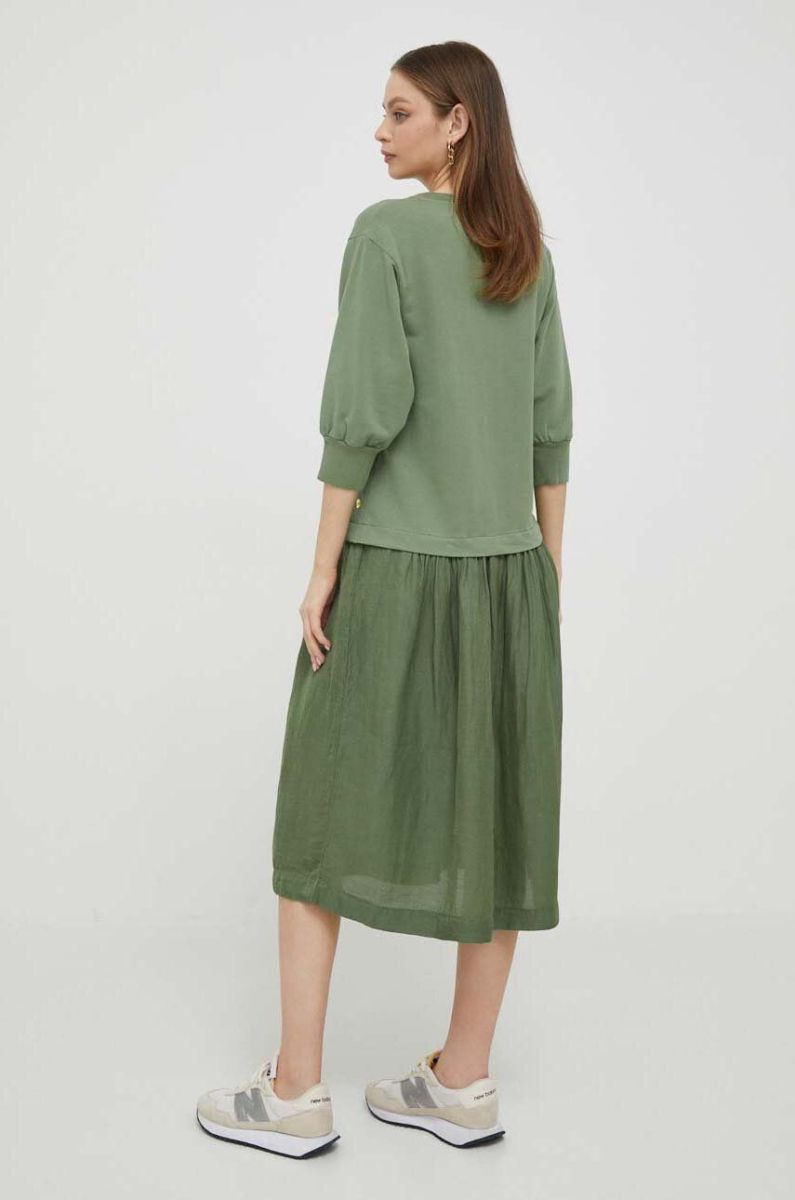 Сукня з домішкою льону Deha колір зелений mini розкльошена