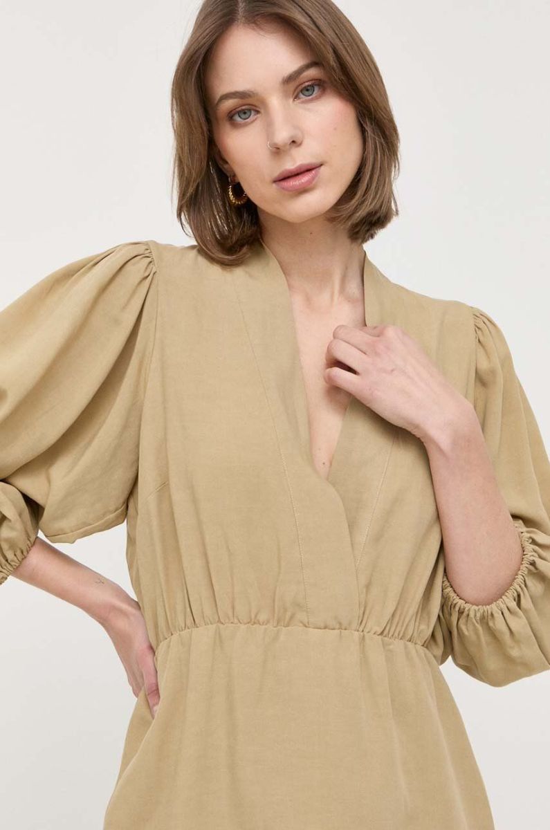 Сукня з домішкою льону Notes du Nord колір зелений mini пряма