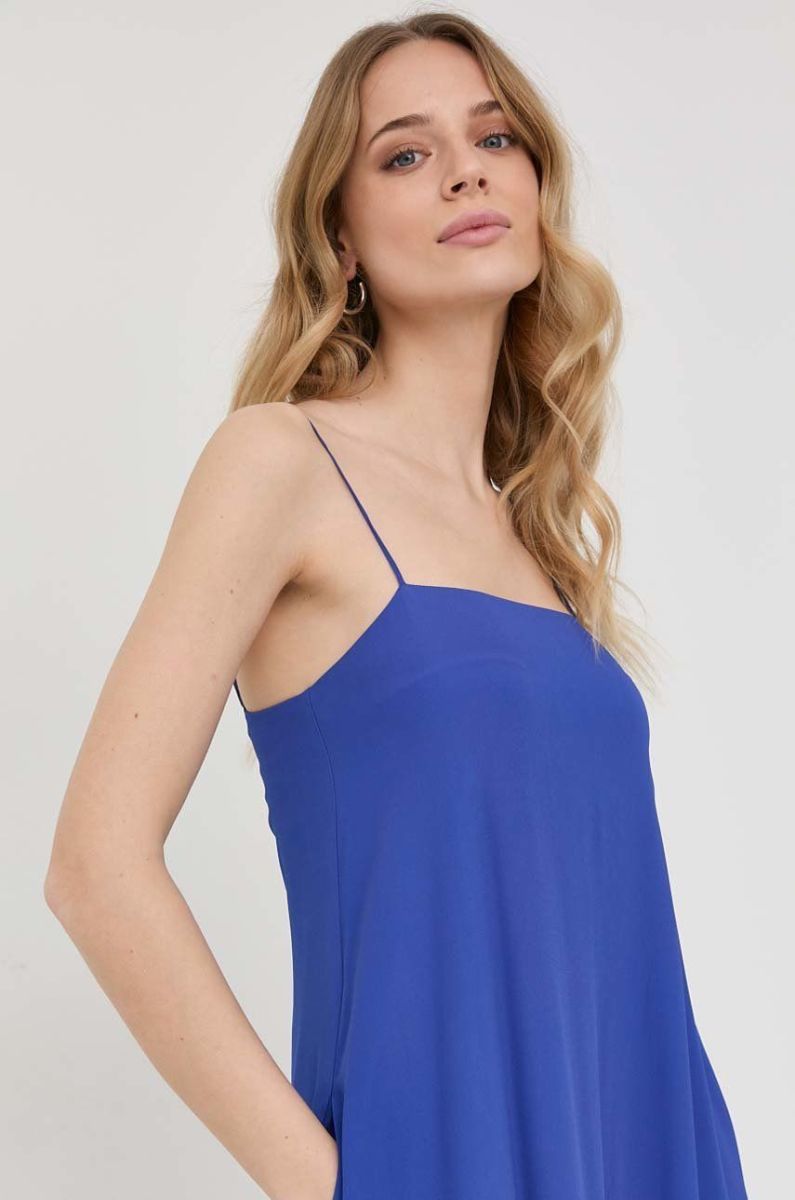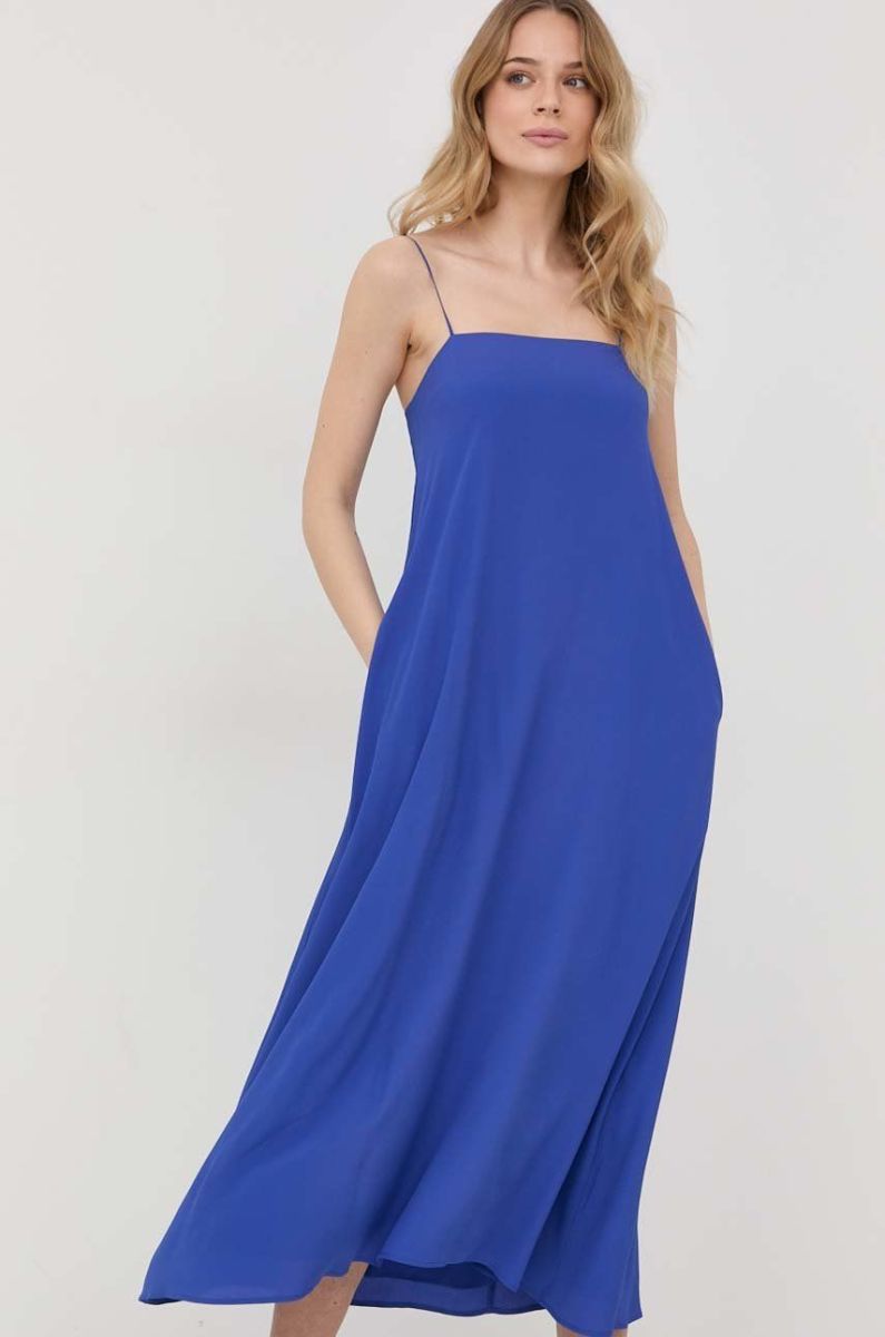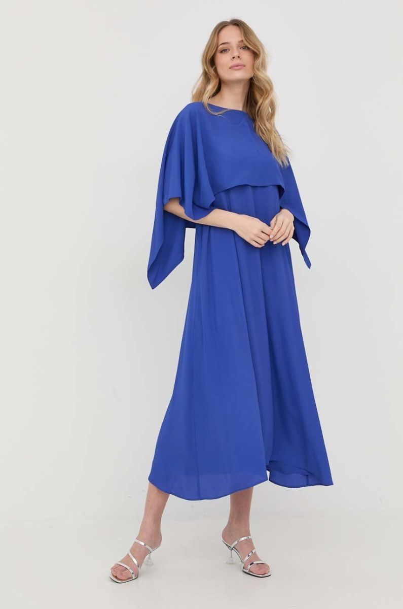 Сукня з домішкою шовку Liviana Conti midi розкльошена колір блакитний