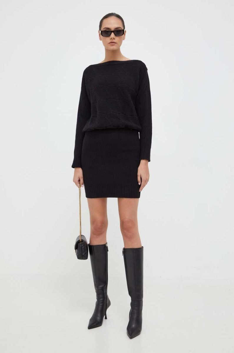 Сукня з домішкою вовни Guess колір чорний mini облягаюча