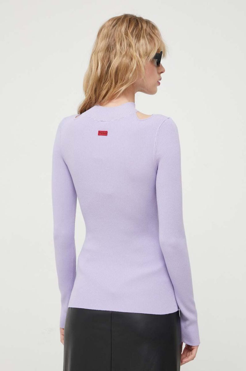 Светр HUGO жіночий колір фіолетовий легкий півгольф