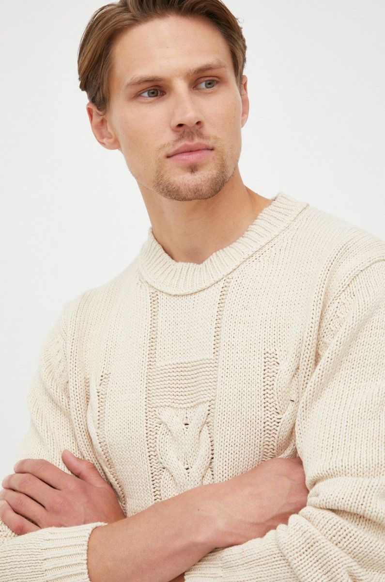 Светр з домішкою льону Tiger Of Sweden чоловічий колір бежевий теплий
