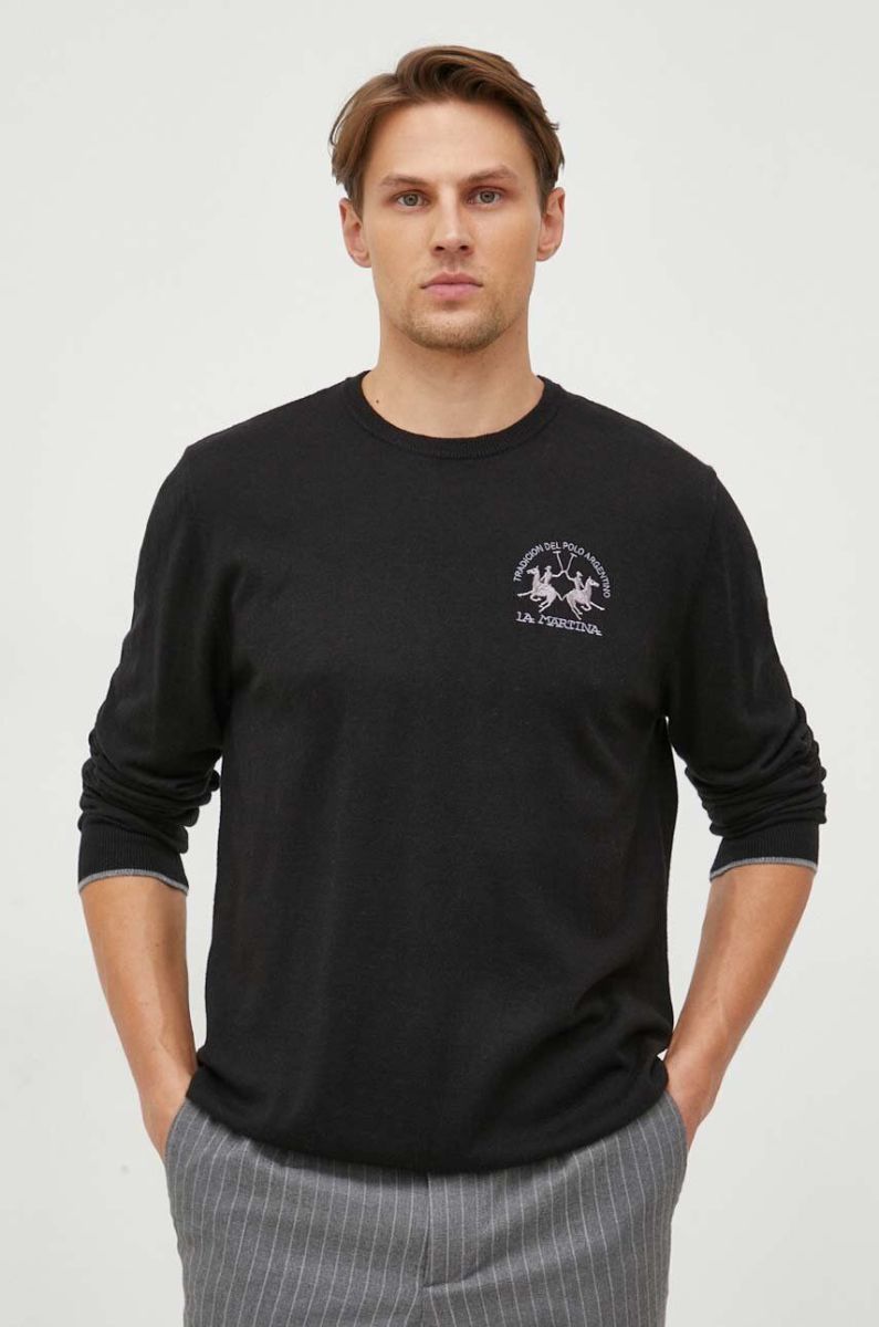 Светр з домішкою вовни La Martina чоловічий колір чорний легкий (3655733)