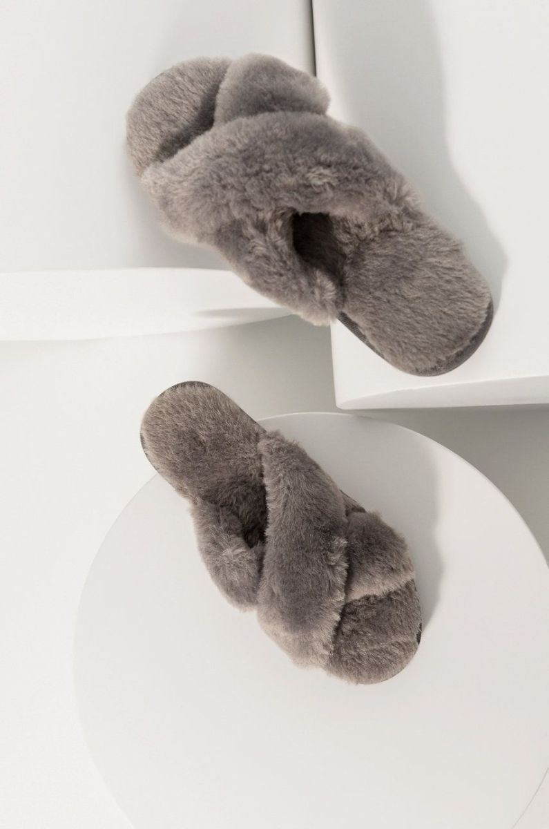 Тапочки із колекції Answear Lab. Модель виготовена з імітації хутра.