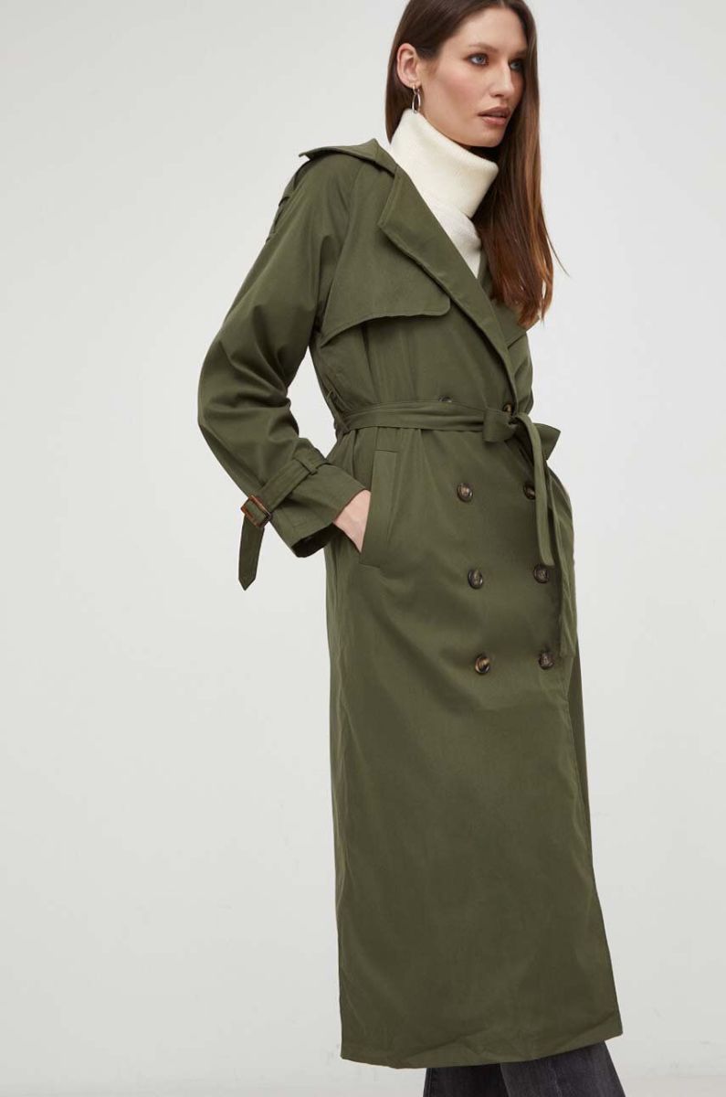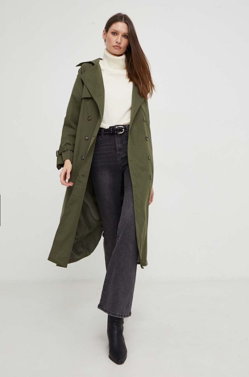 Тренч Answear Lab жіночий колір зелений перехідний двобортний (3433001)