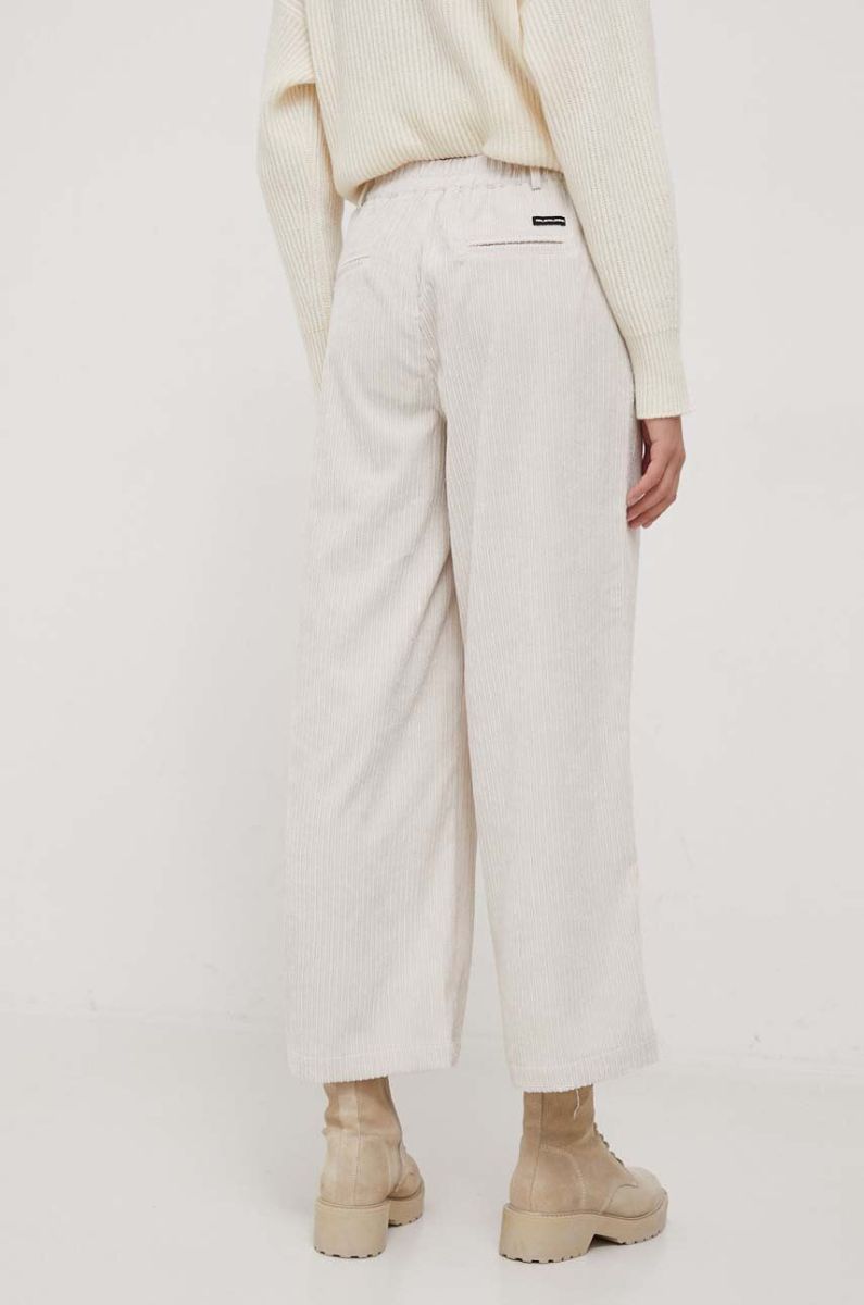 Вельветові штани Pepe Jeans Rihanna колір бежевий широкі висока посадка
