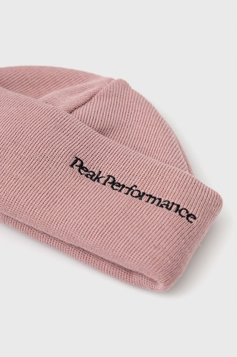 Вовняна шапка Peak Performance колір рожевий з тонкого трикотажу вовна