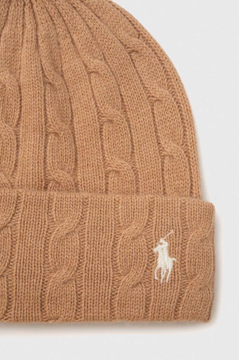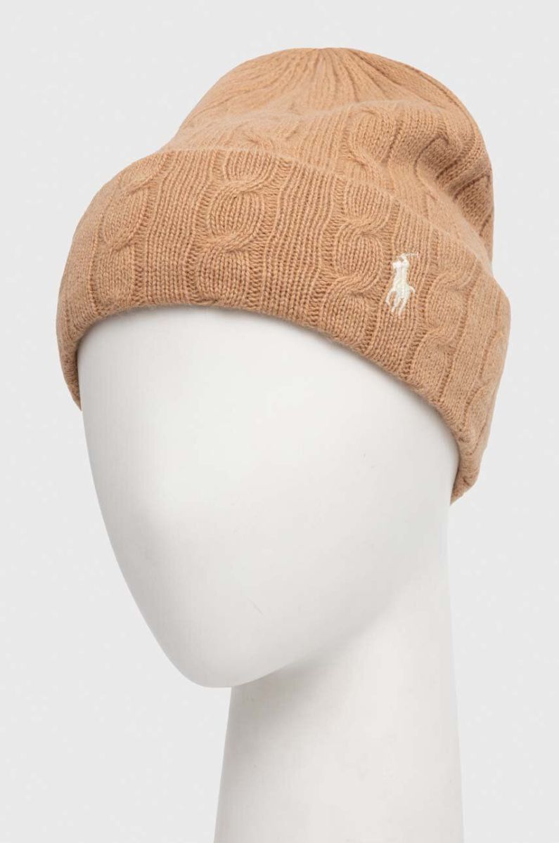 Вовняна шапка Polo Ralph Lauren колір бежевий вовна