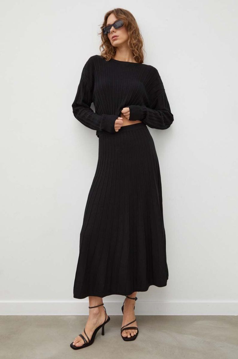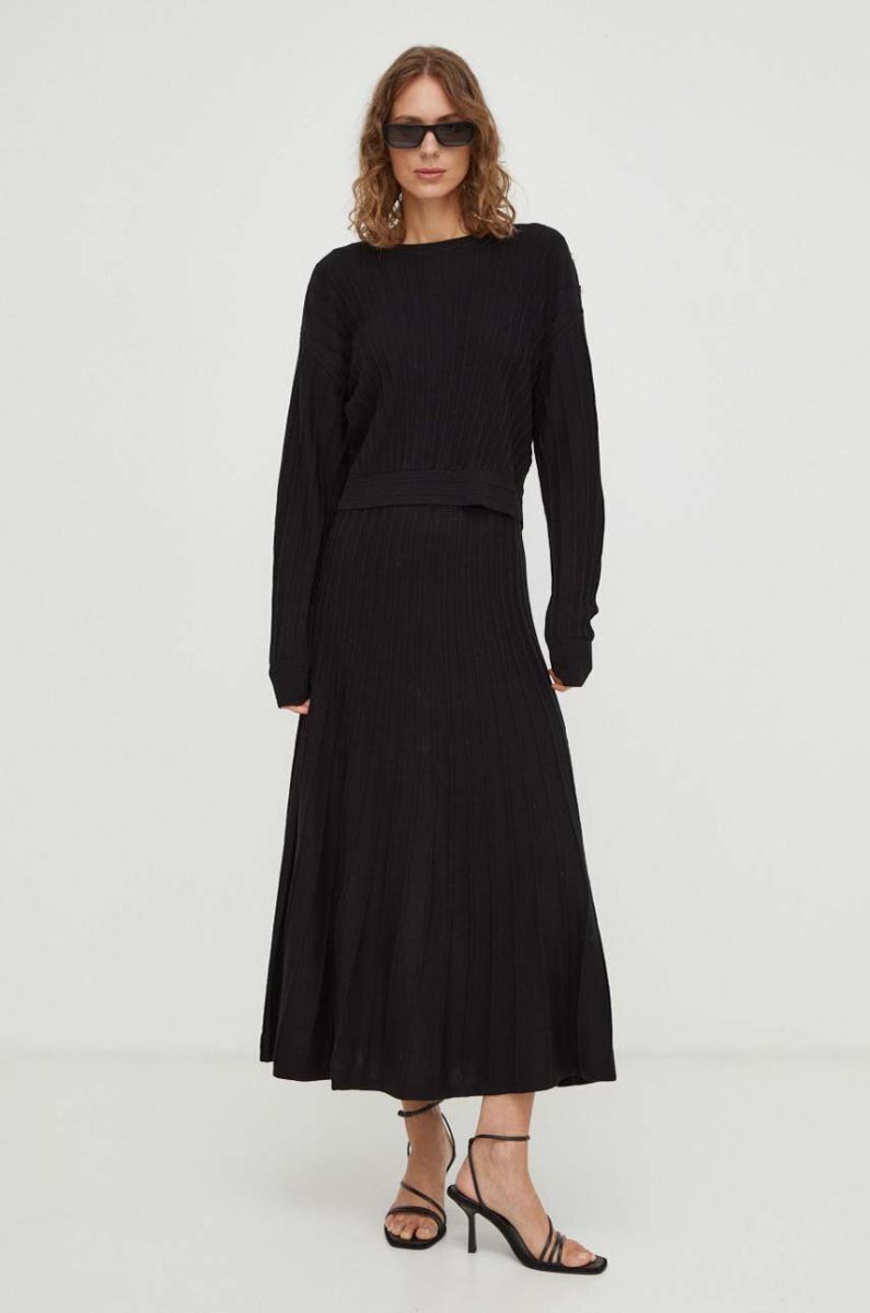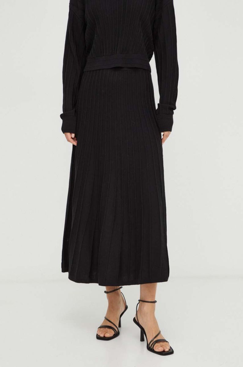 Вовняна спідниця BA&SH колір чорний midi розкльошена