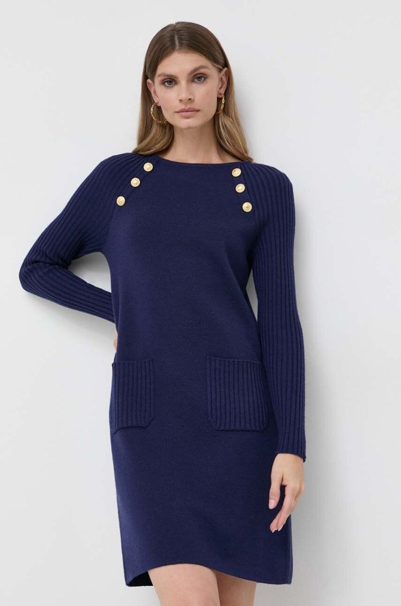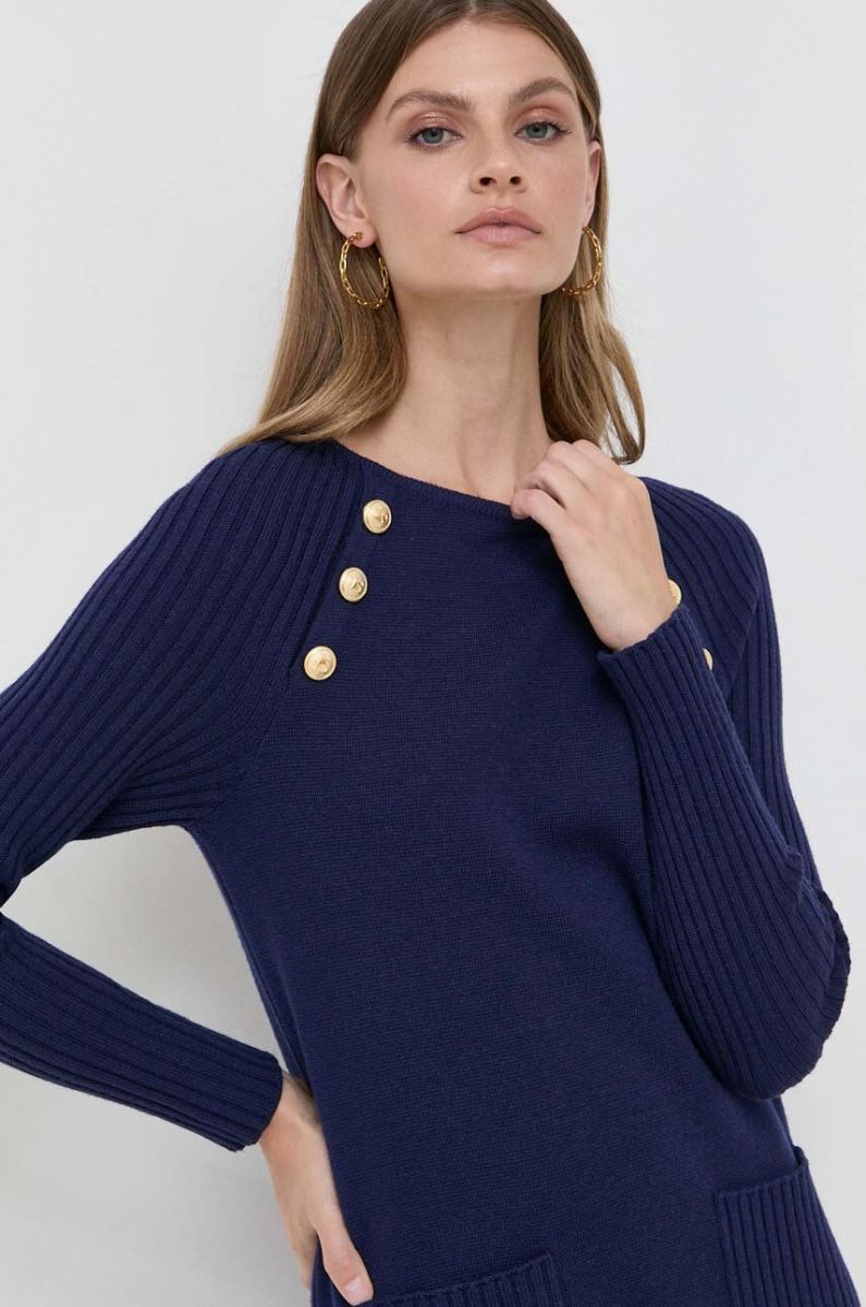 Вовняна сукня Luisa Spagnoli колір синій mini пряма