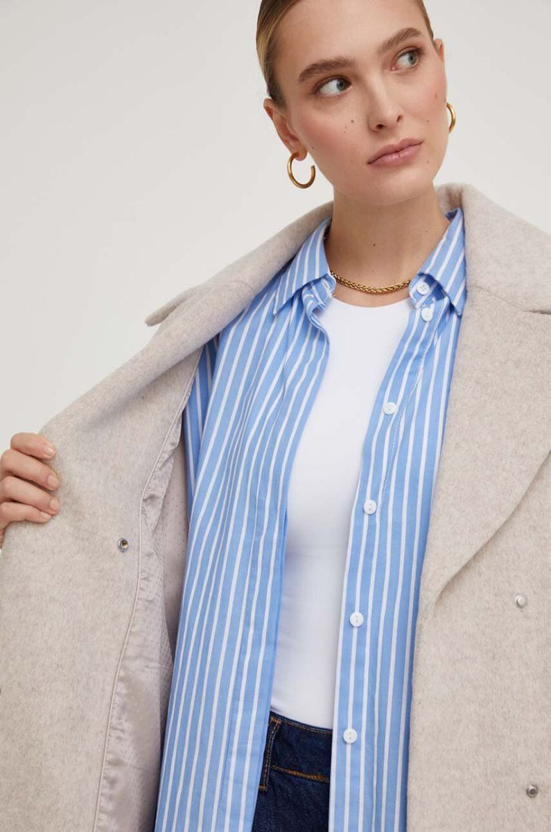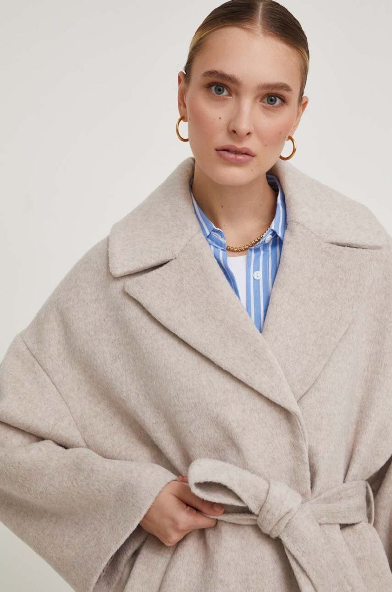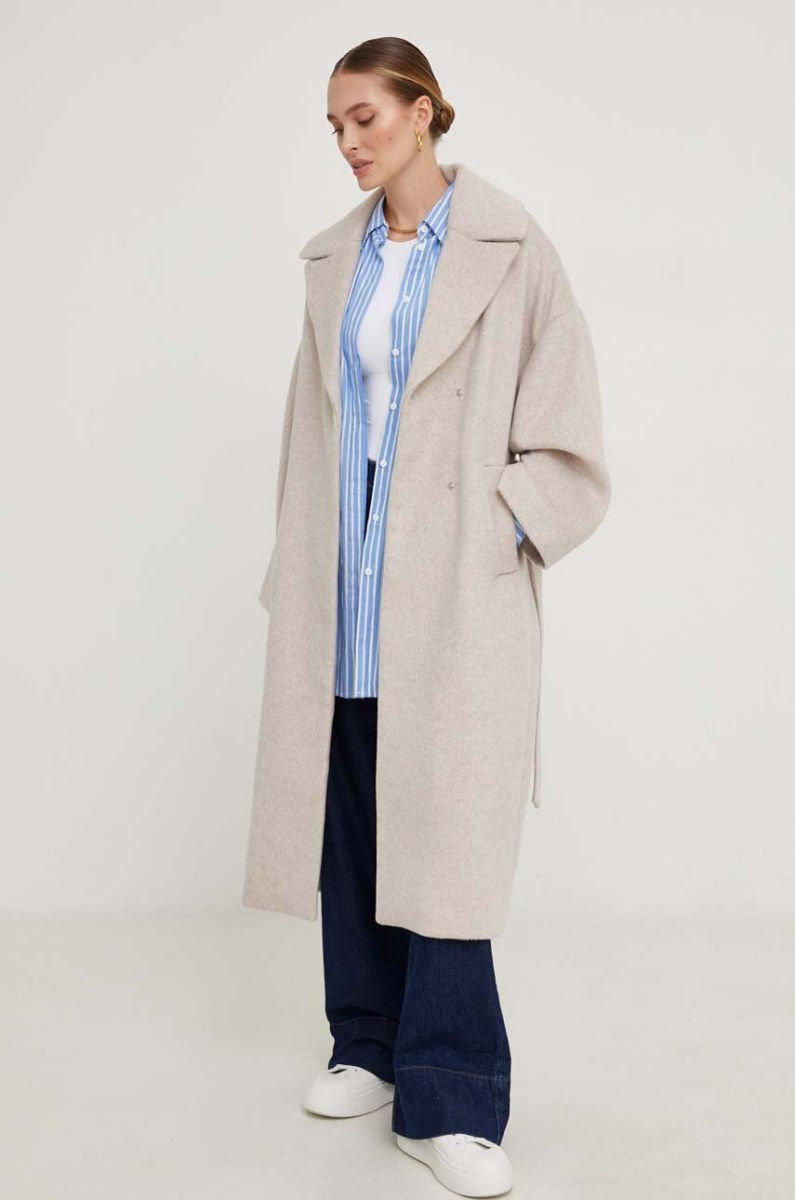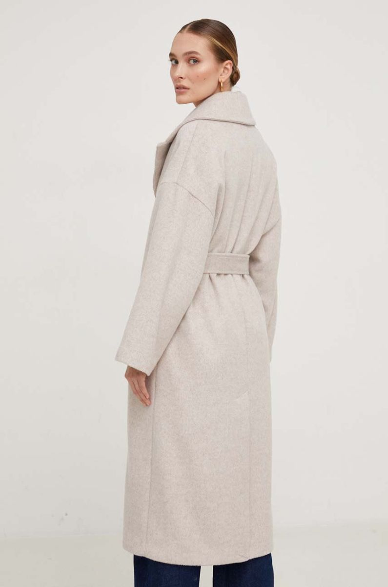 Вовняне пальто Answear Lab колір бежевий перехідний двобортний