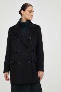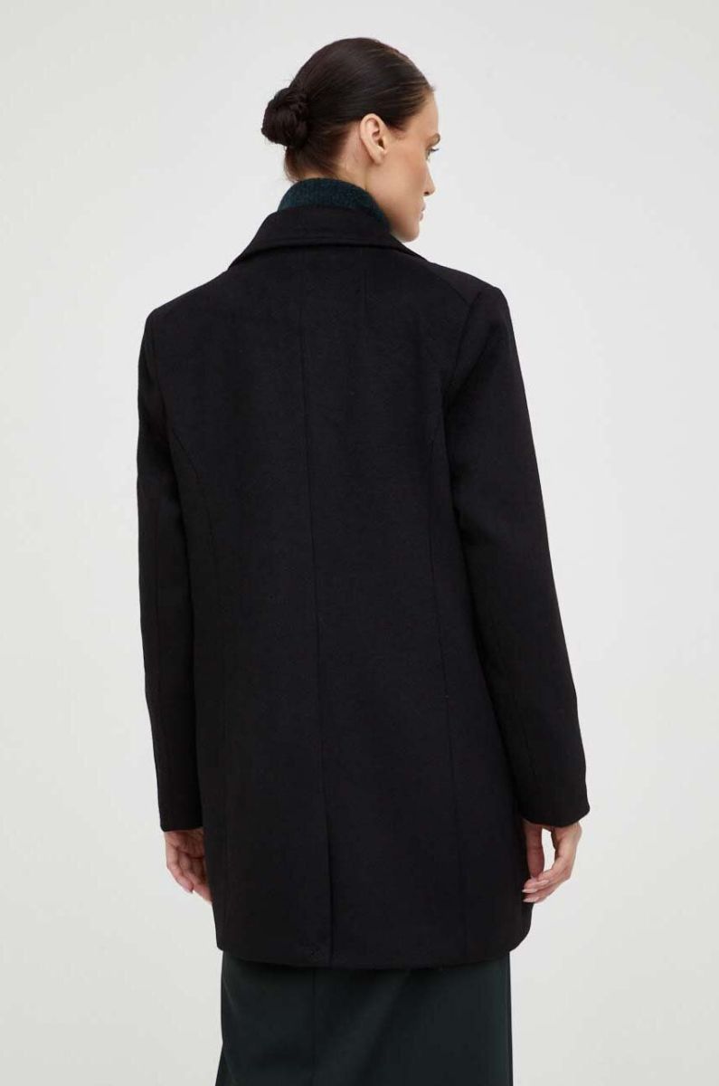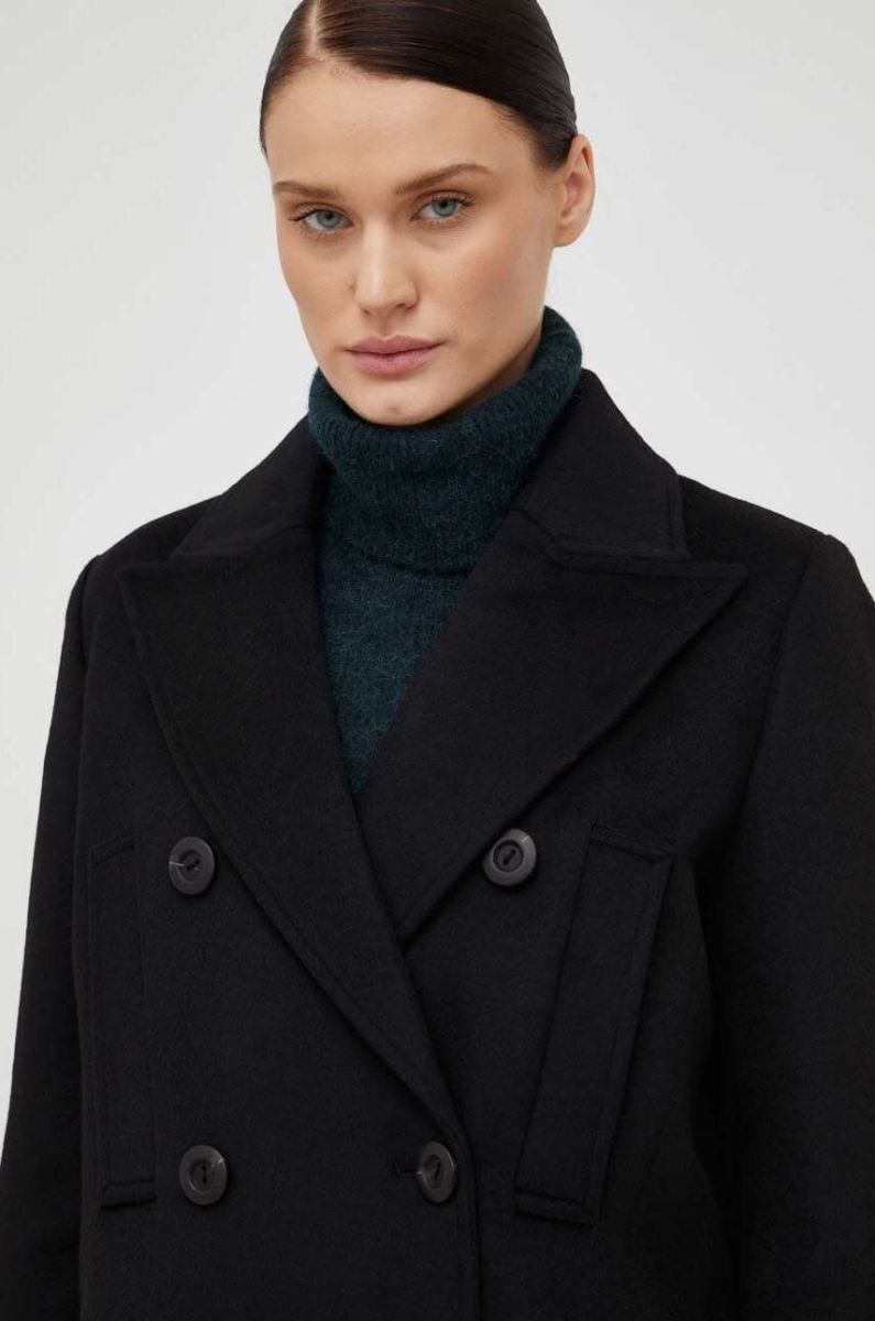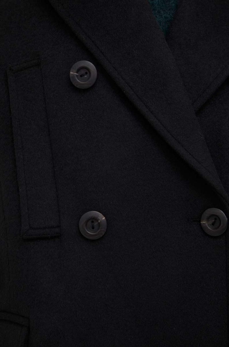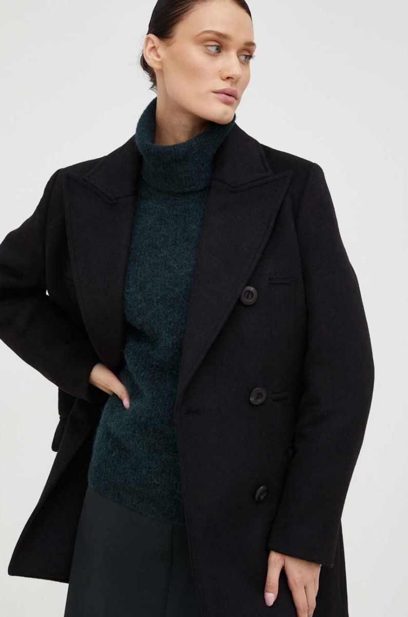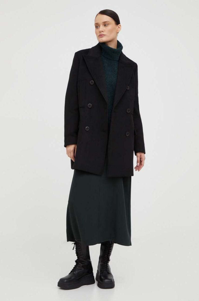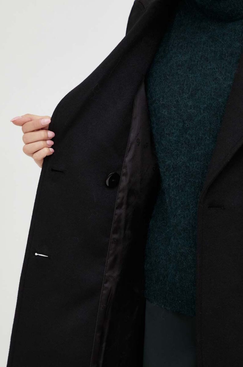 Вовняне пальто Bruuns Bazaar колір чорний перехідний двобортний