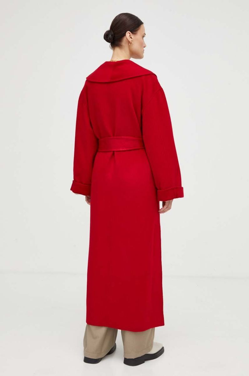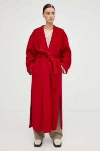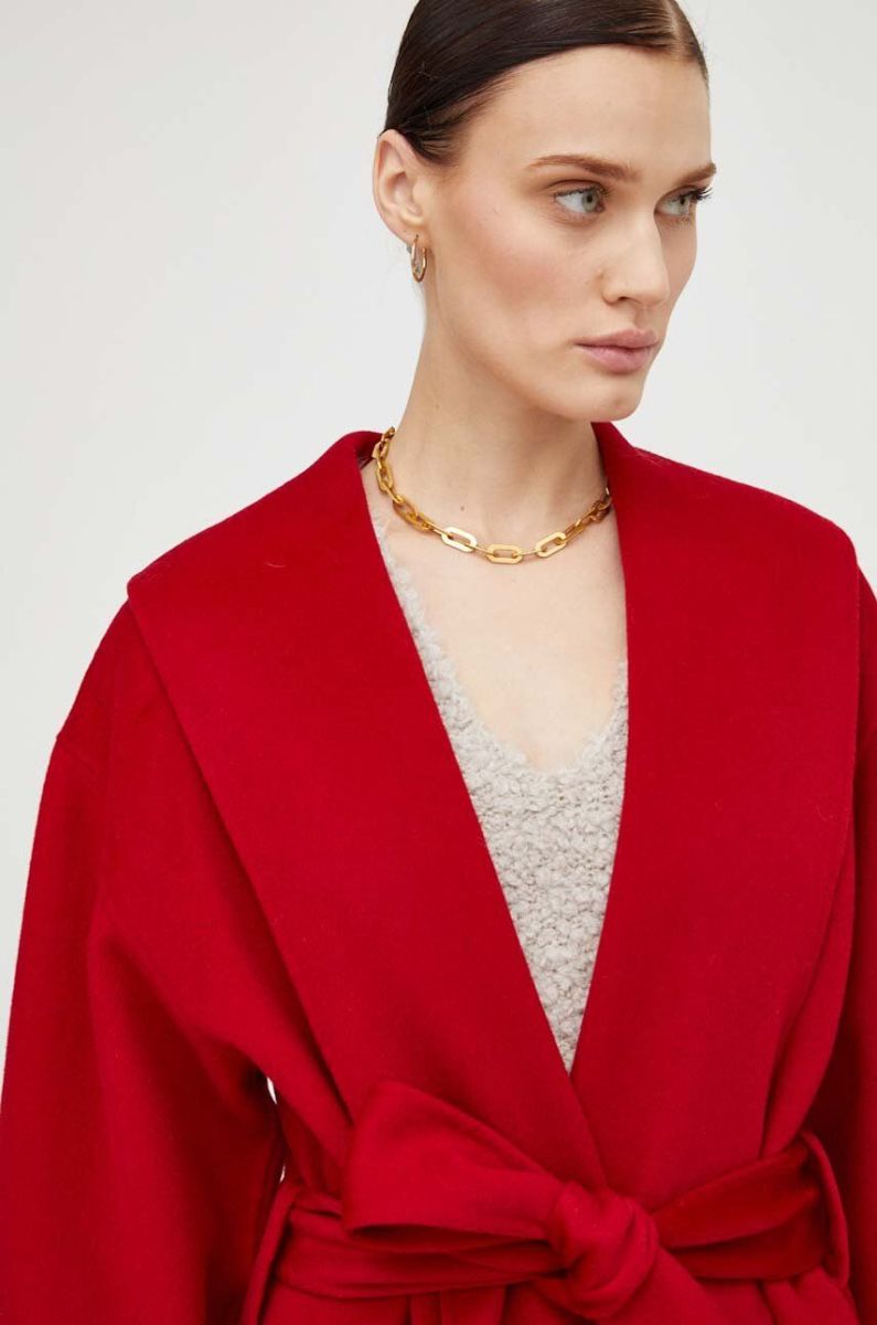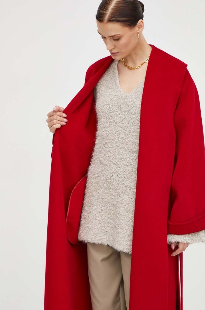 Вовняне пальто By Malene Birger колір червоний перехідний без застібки