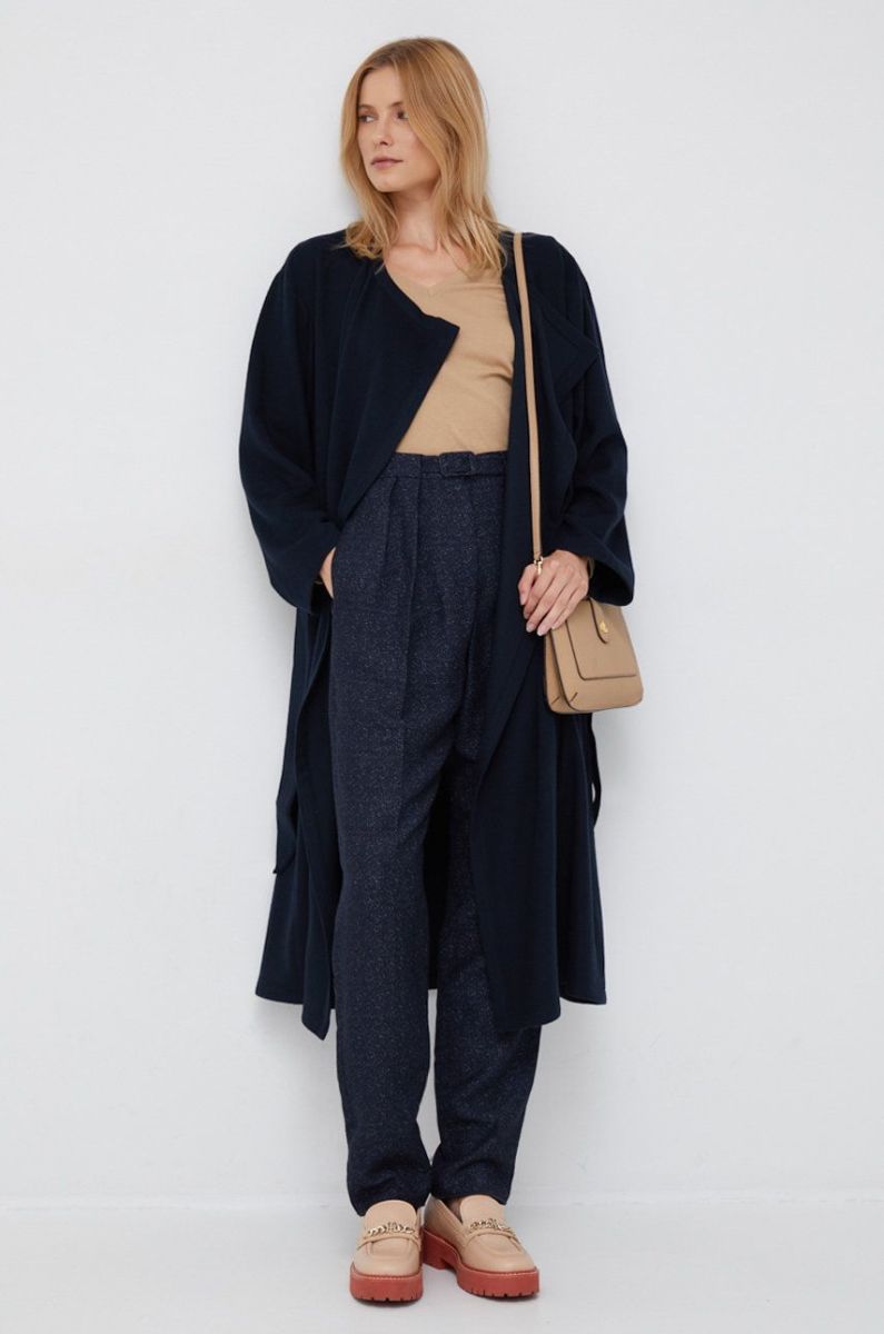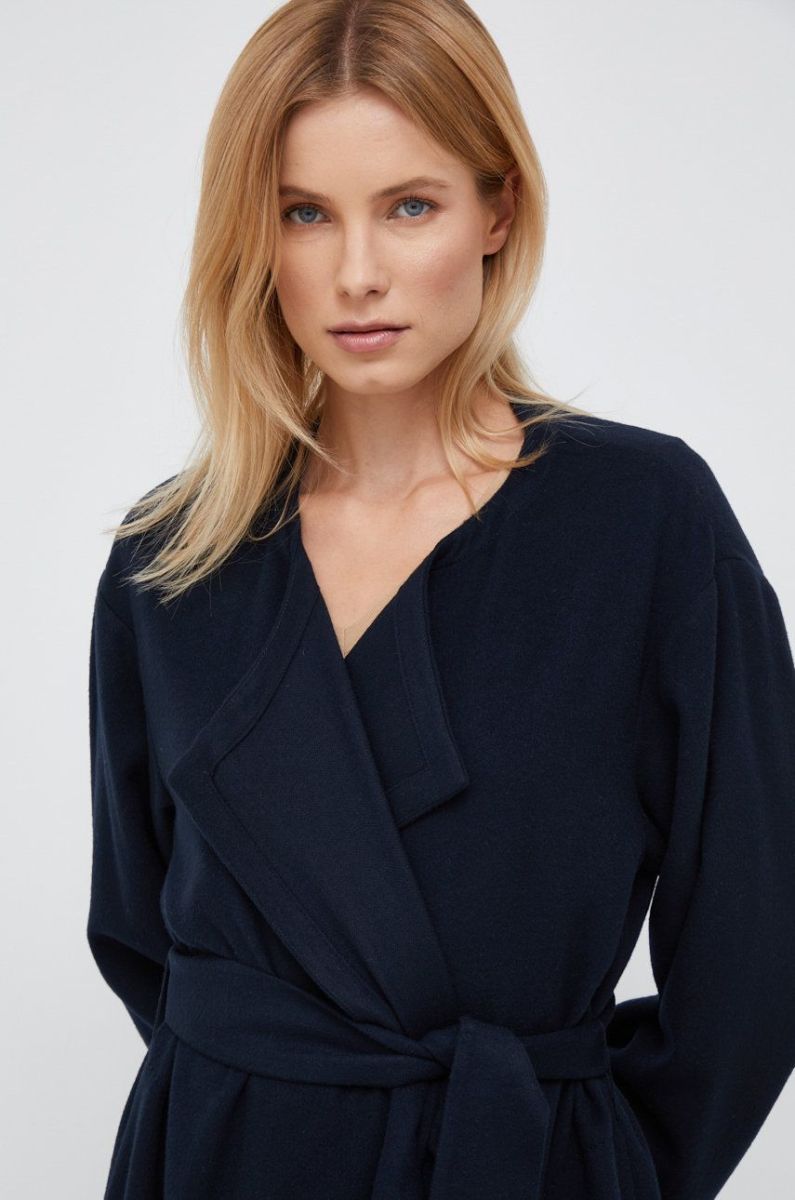 Вовняне пальто Emporio Armani колір синій перехідний