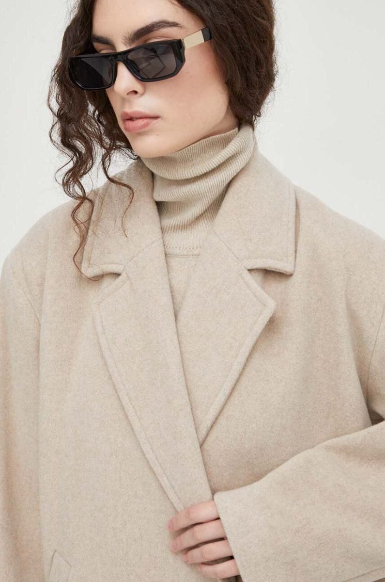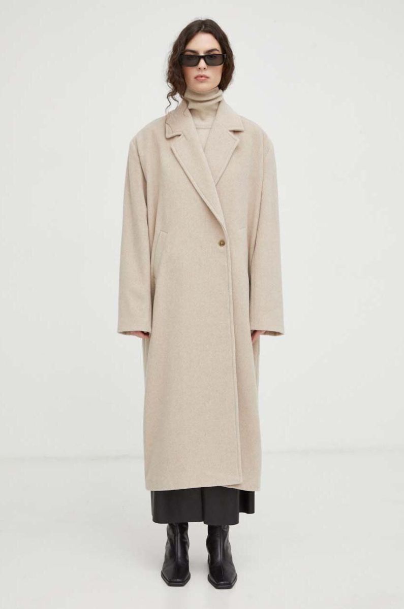 Вовняне пальто Herskind колір бежевий перехідний oversize