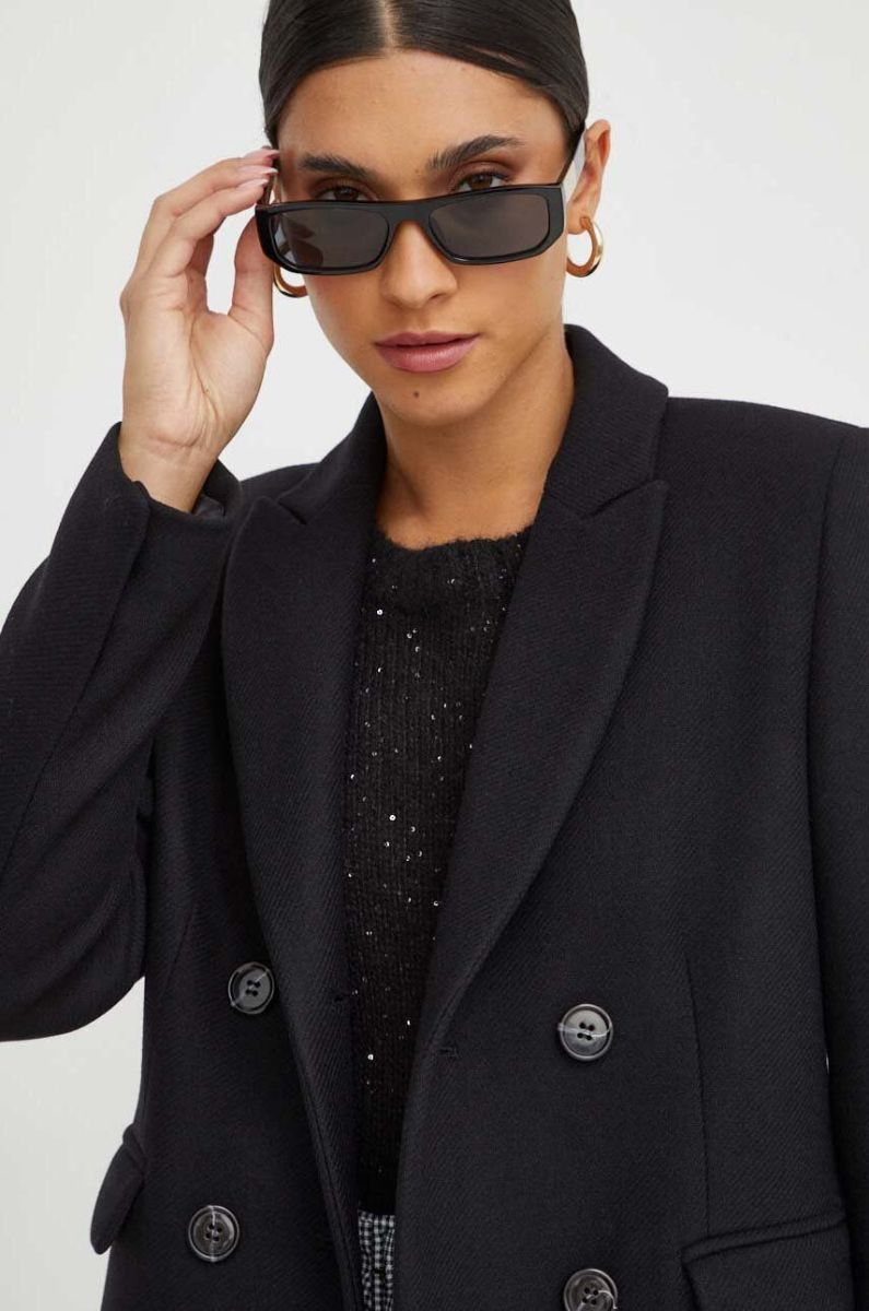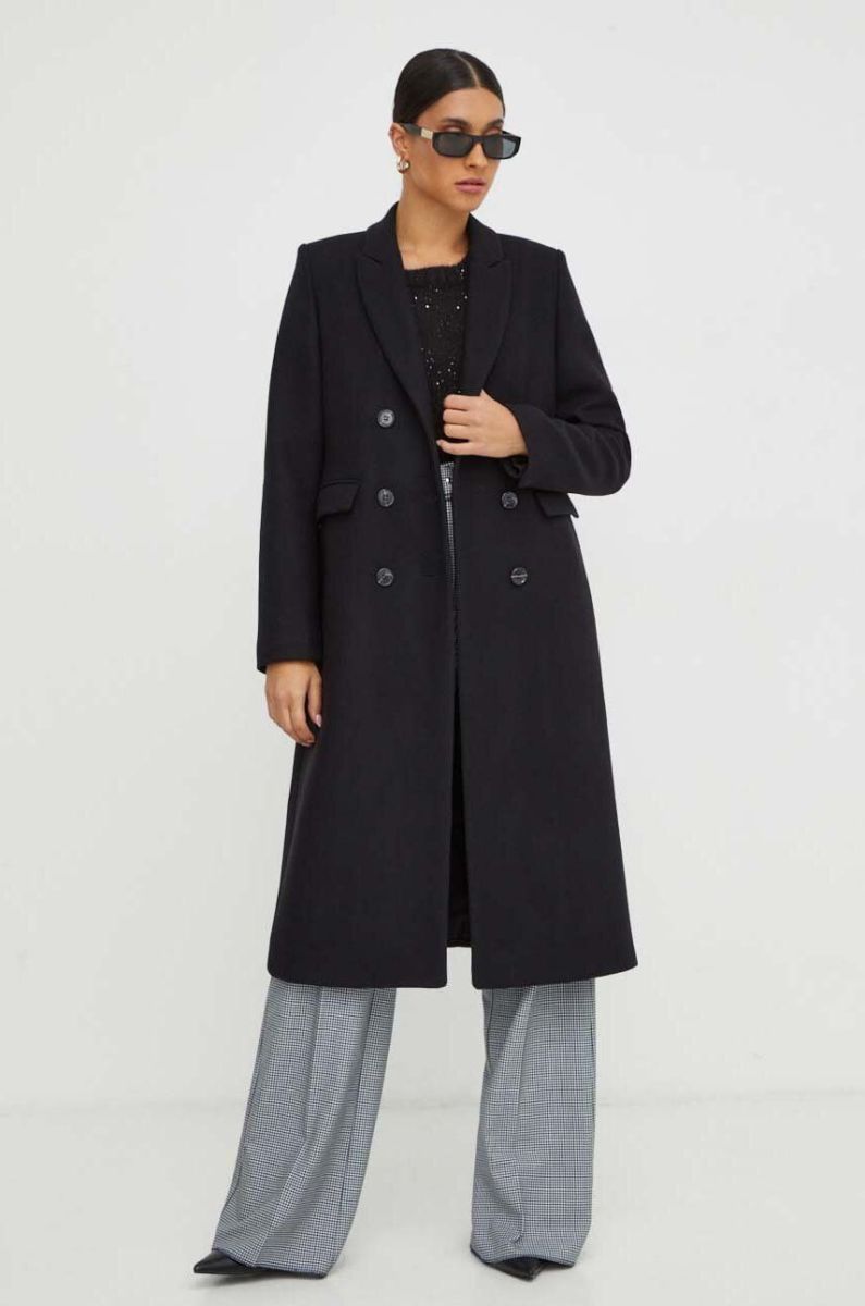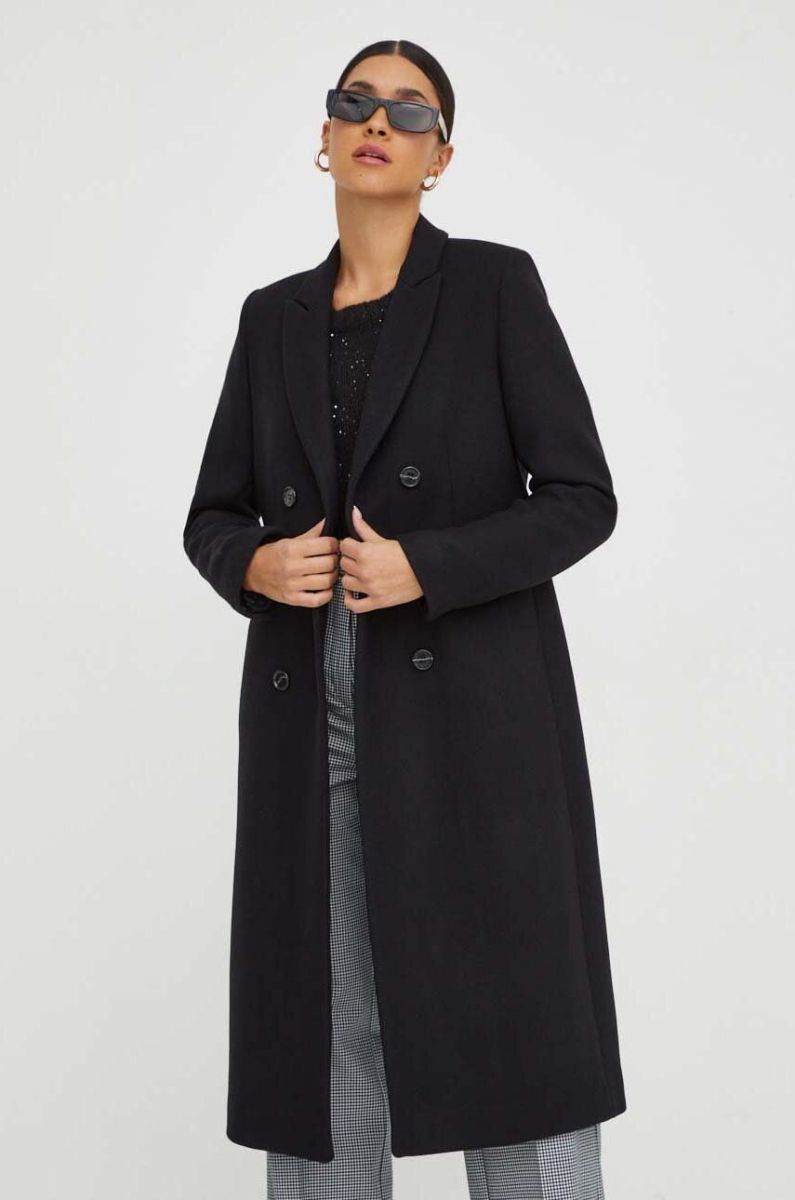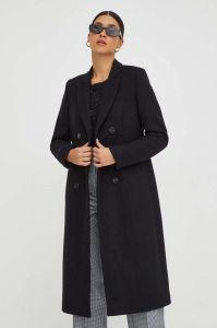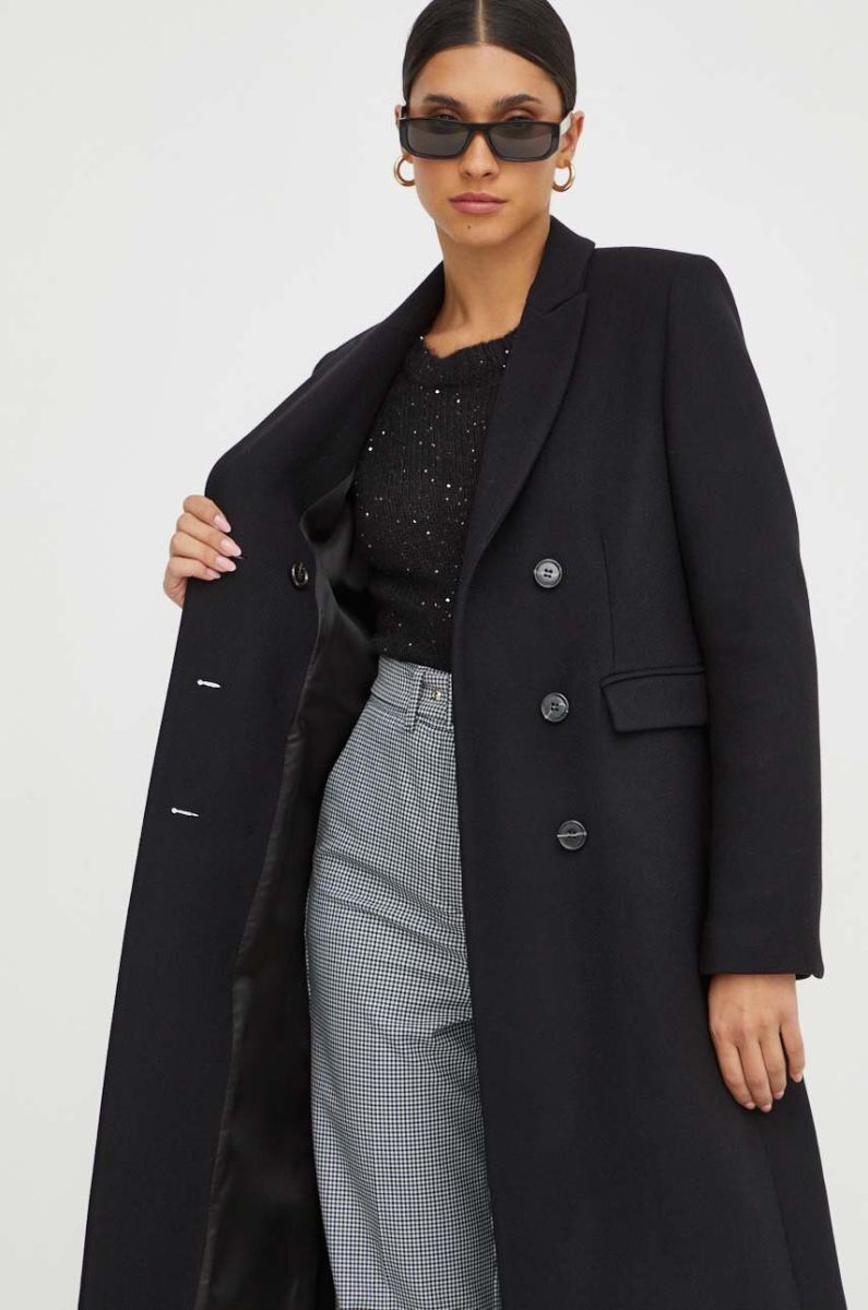 Вовняне пальто Ivy Oak колір чорний перехідний двобортний (3621697)