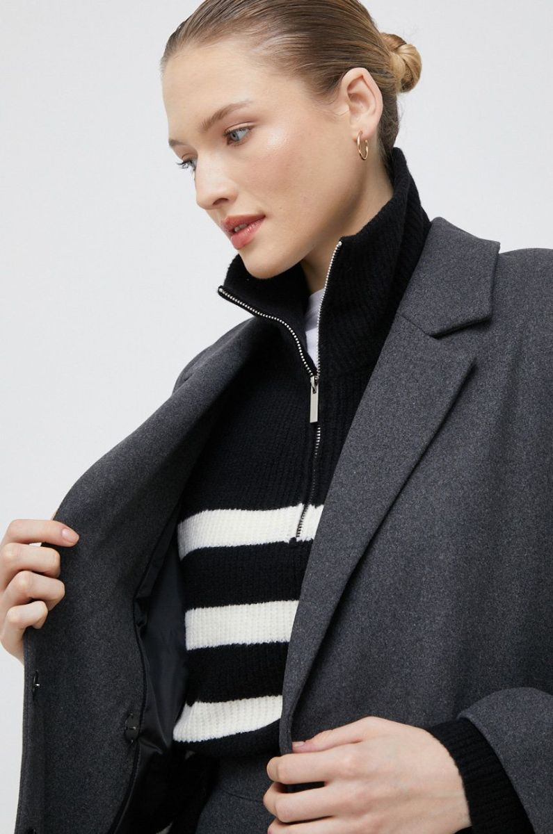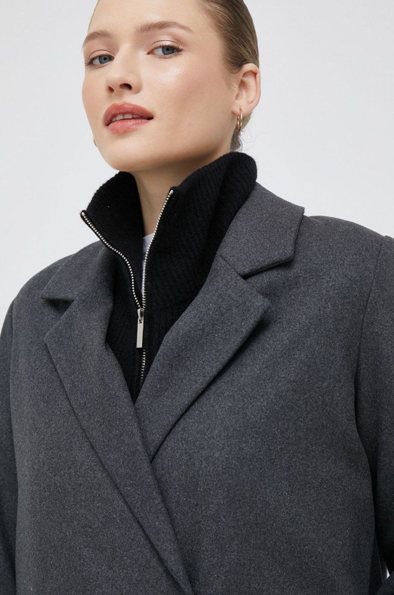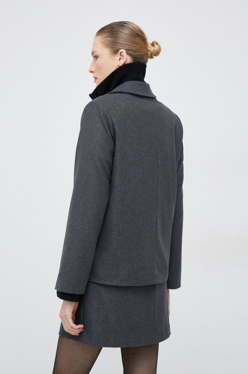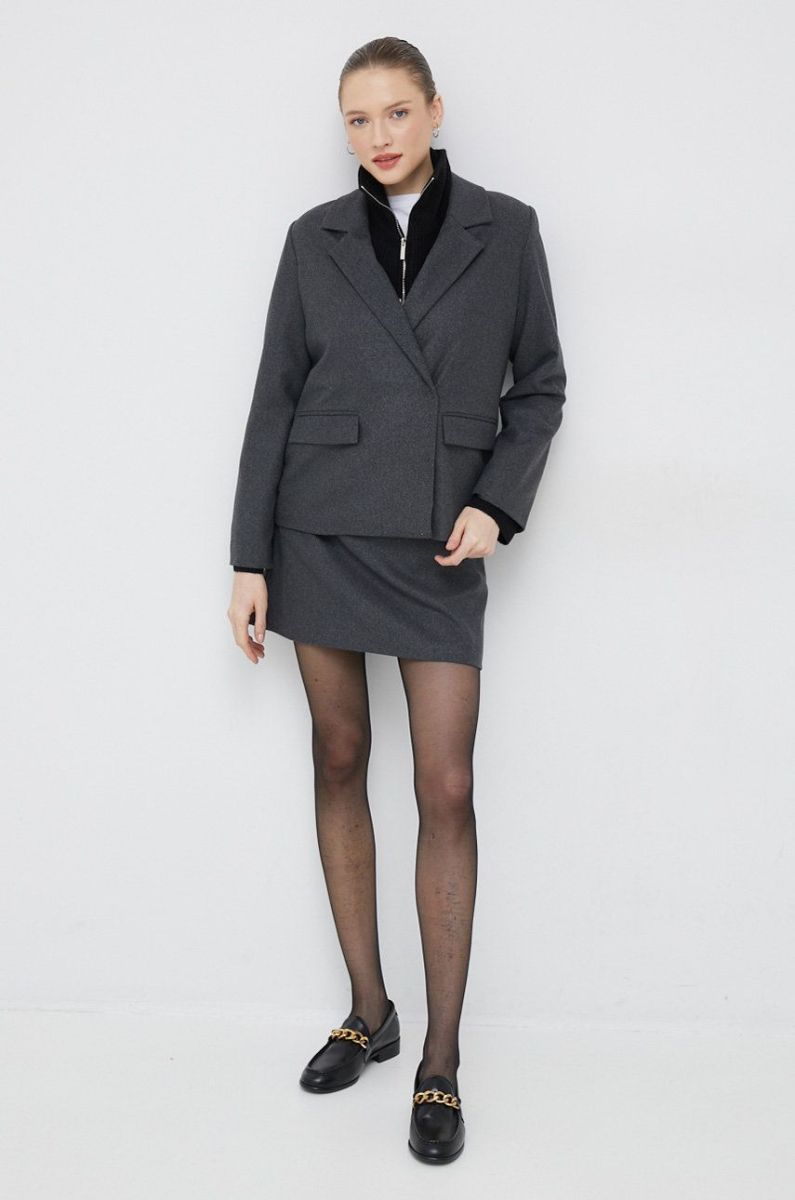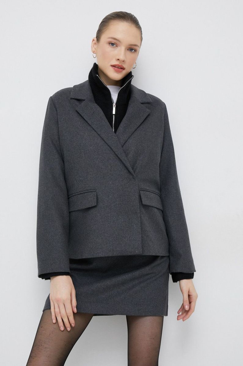 Вовняний піджак Selected Femme колір сірий двобортний однотонна