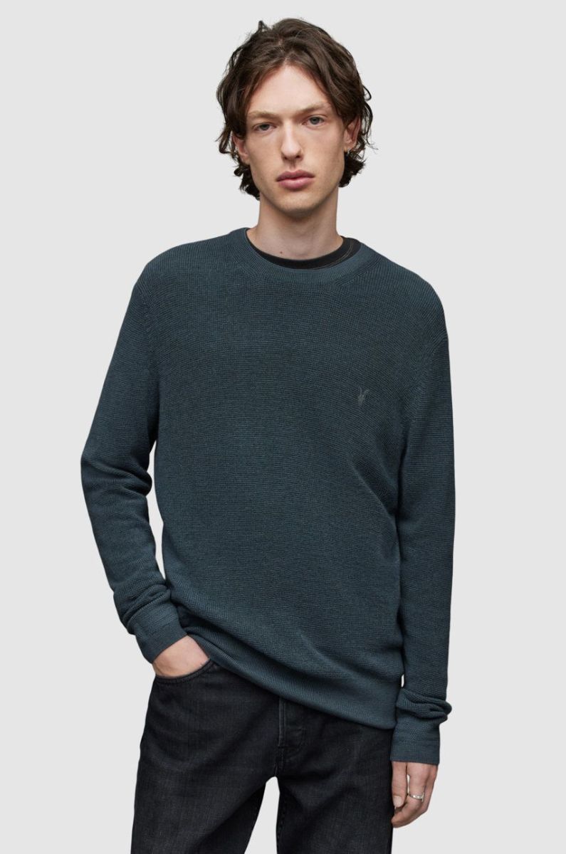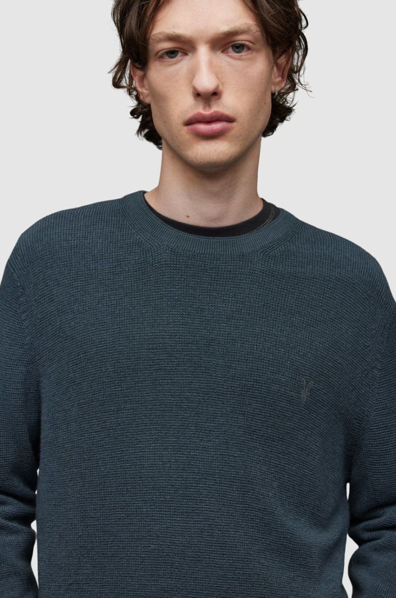 Вовняний светр AllSaints чоловічий колір синій легкий