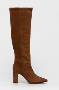Замшеві чоботи Wojas жіночі колір коричневий каблук блок