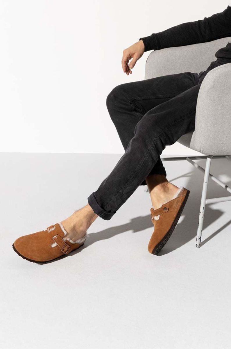 Замшеві тапочки Birkenstock колір коричневий Regular Width